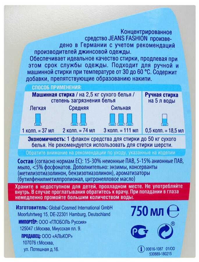 Давно уже пользуюсь этим гелем и по моему мнению, для стирки джинсов он лучшей. Линяют они конечно при стирке, но значительно меньше, отстирывает отлично, но стоит сейчас очень дорого и экономичностью не отличается