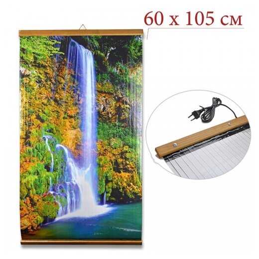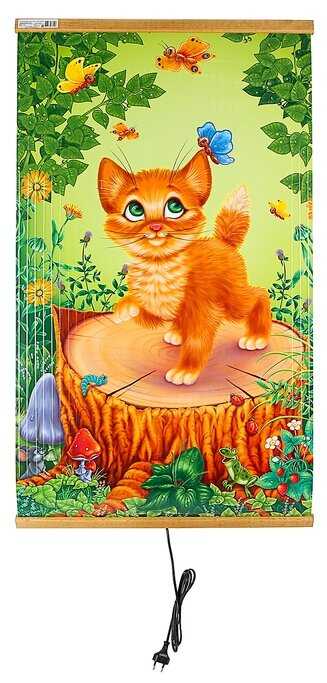 - + Очень красиво! Размер как у картины. Быстрая доставка. Нагревается быстро. Не шумит. Повесила за петельку на иголочки к обоям (шурупчик пока не нужен, но есть в комплекте). Хорошо, что есть планки, они не дают плотно прилегать к стене (ведь нагрев именно там).