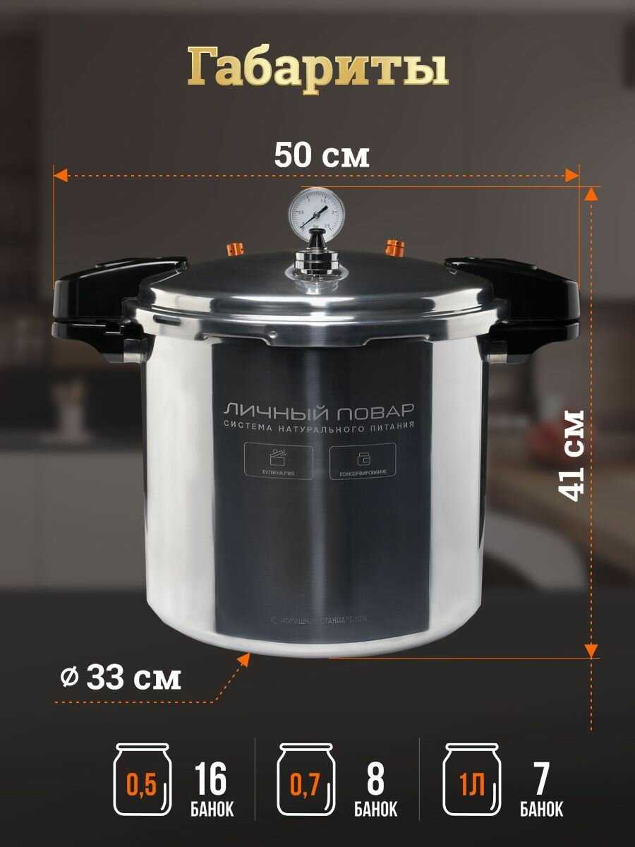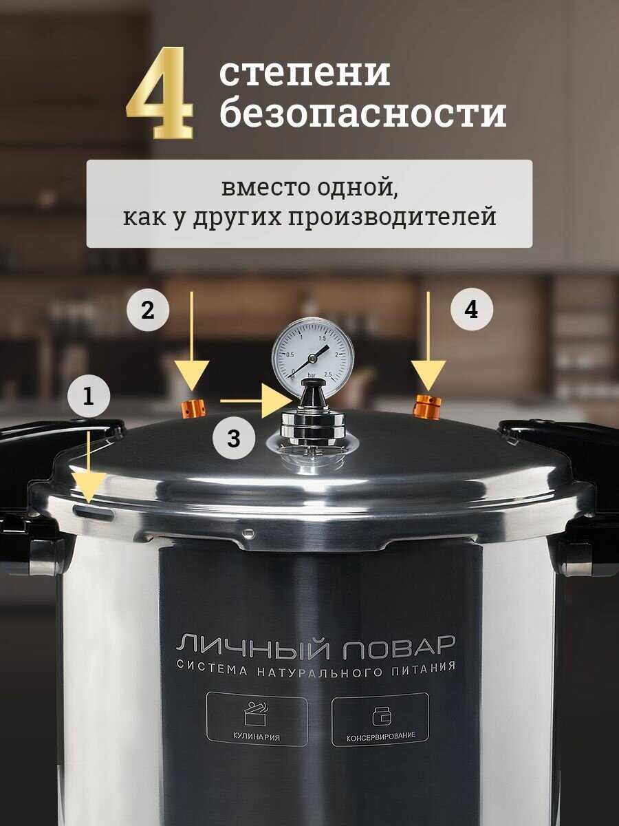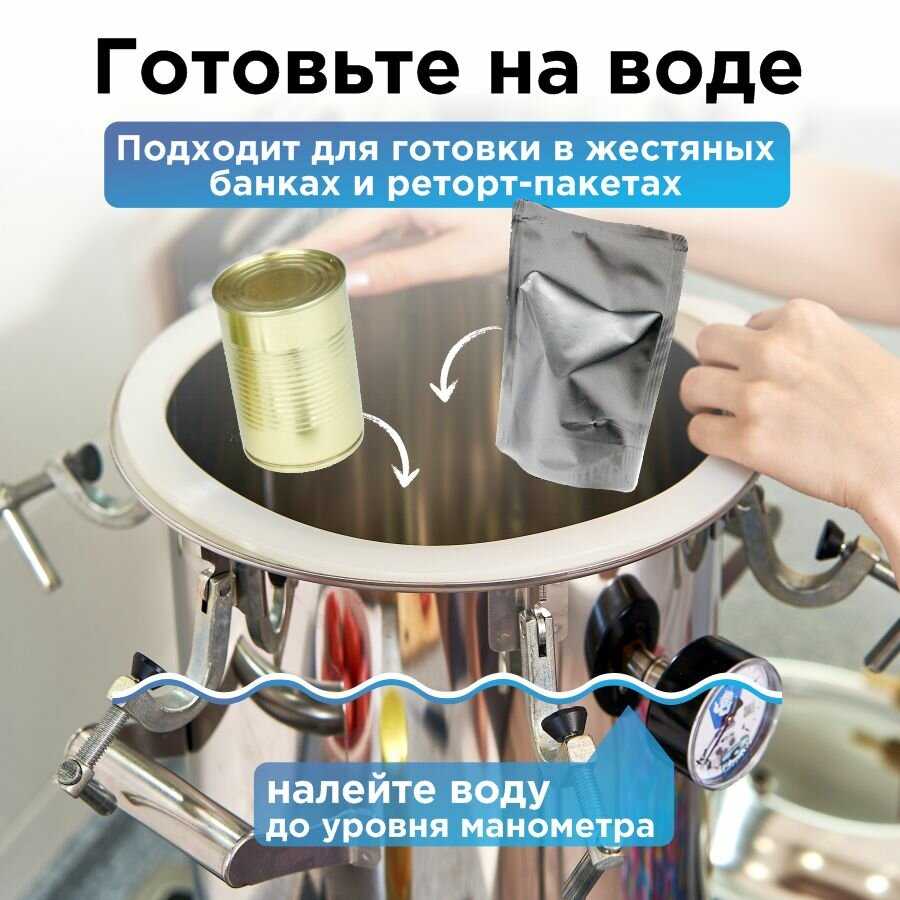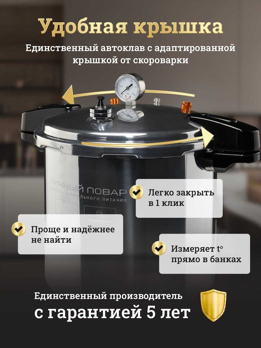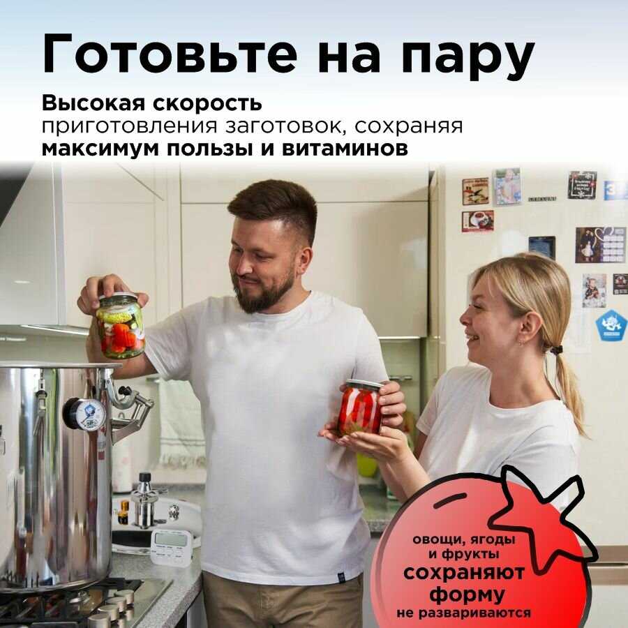 | Подробная комплектация : | 1. Бак 23 л. из нержавеющей стали AISI 304 - 1шт., 2. Крышка Пароматик с кламповым соединением — 1шт., 3. Силиконовая прокладка под крышку - 1 шт., 4. Поддон для банок (фальшдно) - 1 шт., 5. Запасные опоры для прижимов - 2 шт., 6. Заглушка для клапанов - 2 шт., 7. Манометр (встроен в корпус) - 1 шт., 8. Электронный термометр - 1 шт., 9. Книга рецептов - 1 шт., 10. Руководство пользователя - 1 шт., 11. Гарантийный талон — 1 шт. |