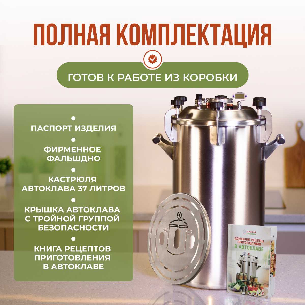 Аппарат выглядит достойно . Внешний вид , комплектация , характеристики , все согласно описания . Опрессовал под рабочей температурой - замечаний нет , сварные швы и уплотнения герметичны , клапана работают , на первый взгляд даже подкрутить ничего ни где не надо - сборщики автоклава хорошо поработали . С доставкой также все в порядке . Коробка целая не помятая .