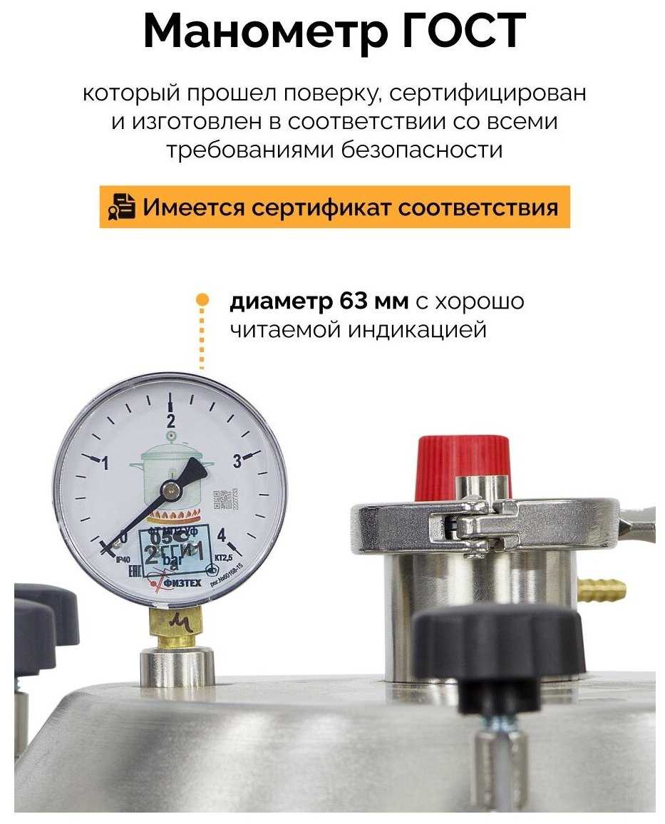 Приобрела данный автоклав на 26 литров. За неделю после покупки - использую его каждый день. В подарок к автоклаву лежала упаковка крышек Твист-офф ( приятно). Дополнительно приобрела зажимы для банок ско. Готовлю на нем на пару ( хотя можно готовить на воде тоже). Удобно, что воды нужно заливать только 1!!! литр. Очень большая книга рецептов в комплекте. Манометр прошел поверку 04.2023. В комплекте идёт фальшдно. А банки выставляются друг на друга, что очень удобно, так как можно использовать разные по высоте банки. Всем советую данного помощника к покупке!