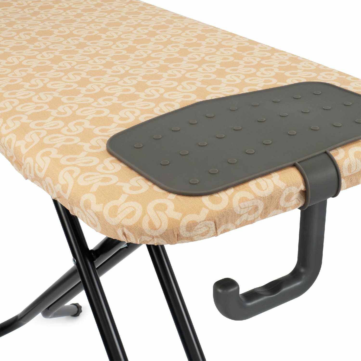 - + В гладильной доске 5 положений по высоте, фиксатор крепкий. Стандартный утюг и стопку одежды выдерживает без вопросов.