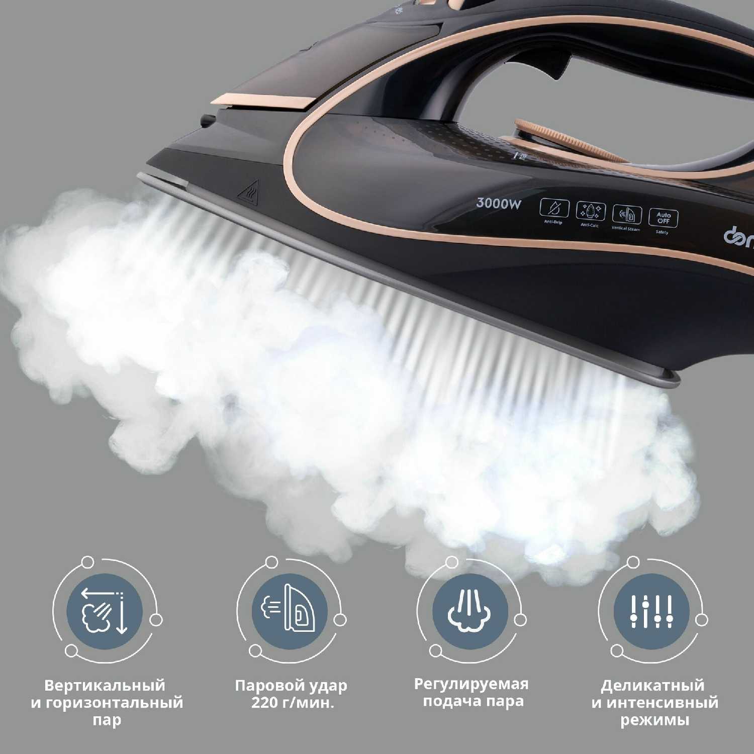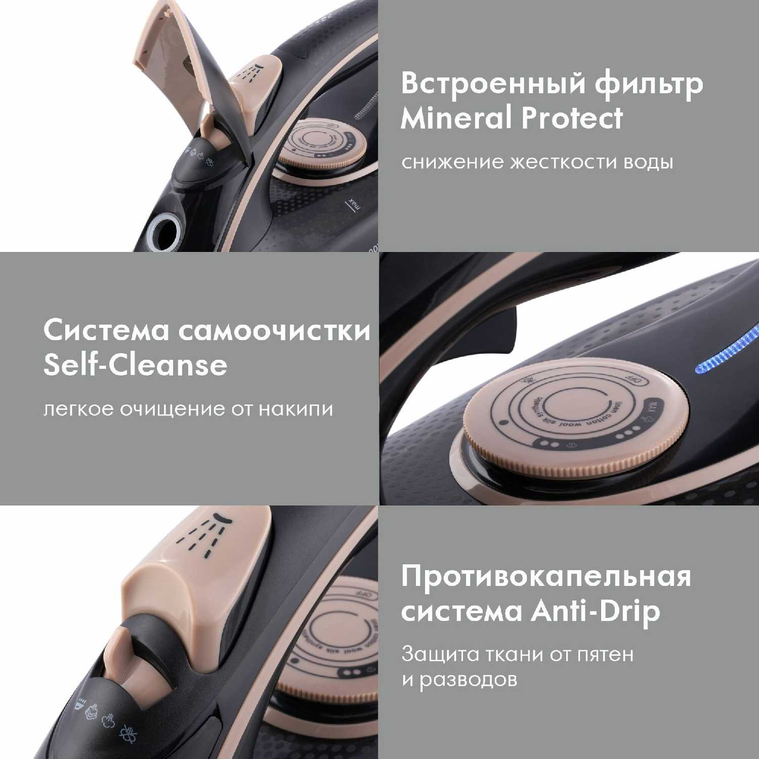 - + Моментально нагревается, качественная керамическая основа, удобно заливать воду, распылитель работает, не брызгает, пар мощный.. отглаживает моментом !