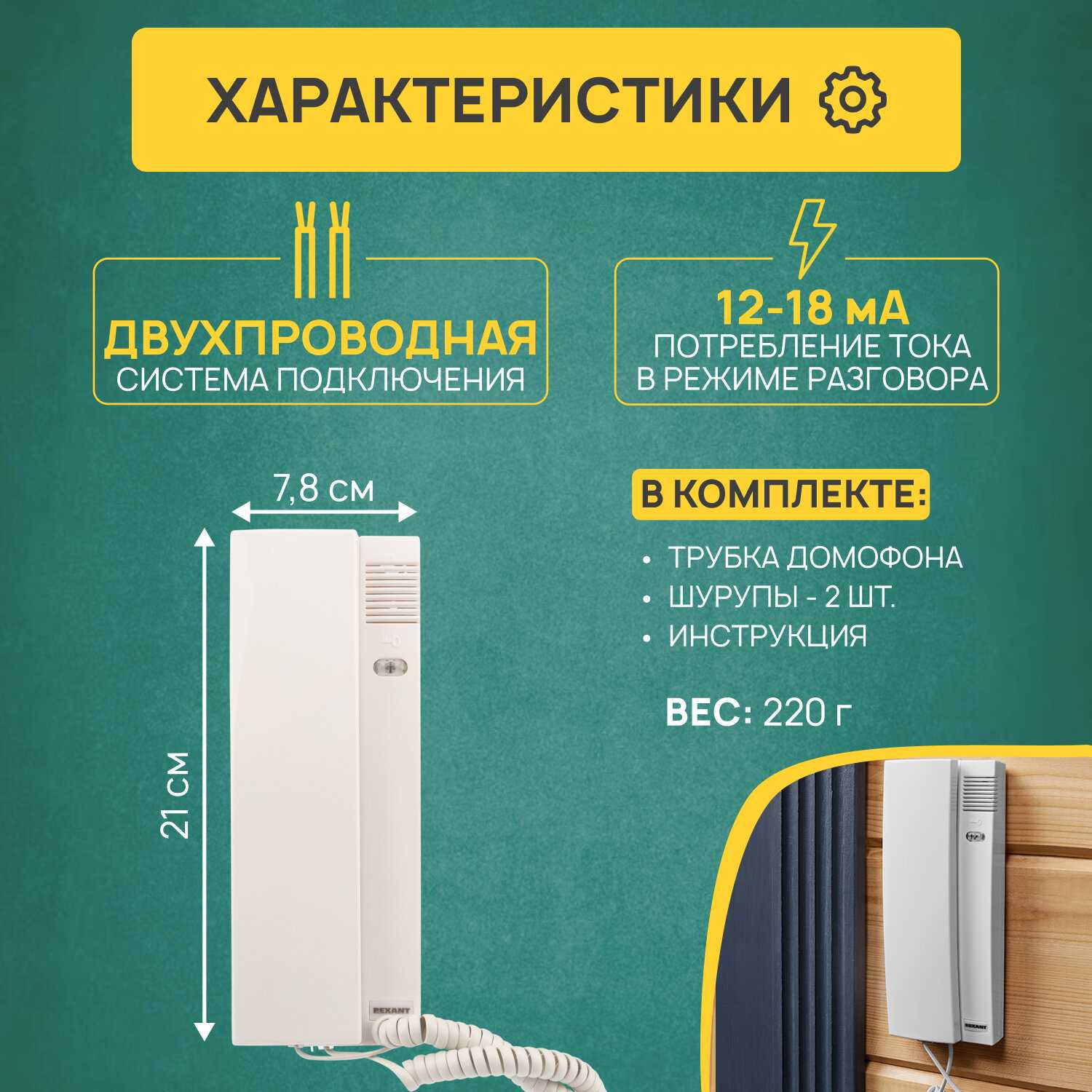 6.1/10 балловREXANT Трубка для координатного домофона (с индикатором и регулировкой звука)