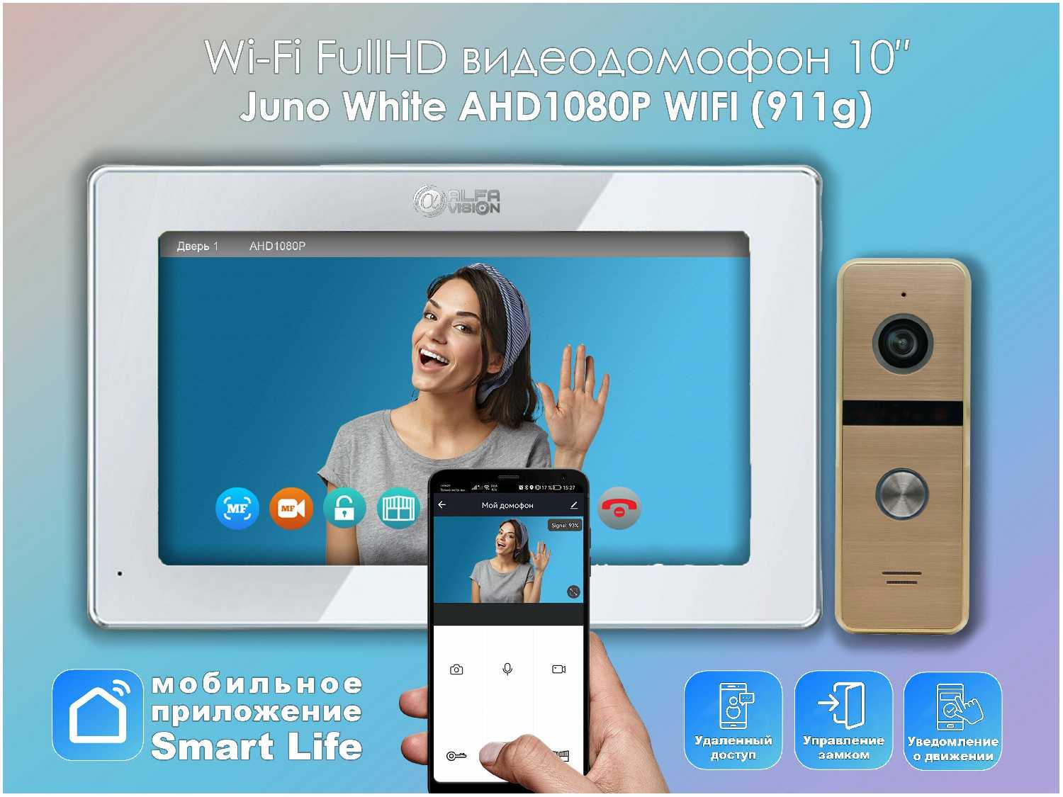 AlfaVision Комплект видеодомофона Juno White-KIT Wi-Fi (911s) Full HD, 10 дюймов /в квартиру /домофон в подъезд / видеодомофон для частного дома