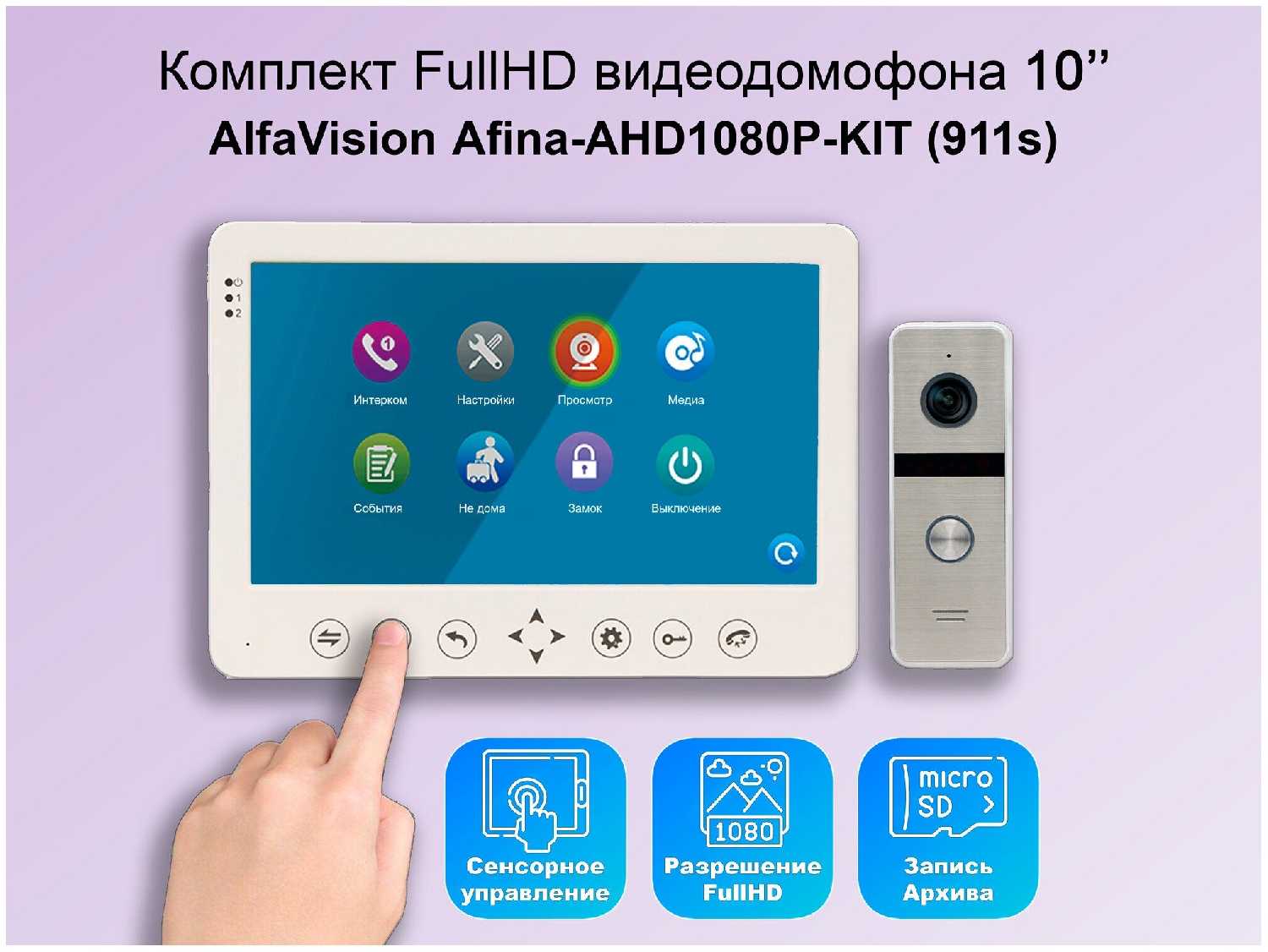 AlfaVision Комплект видеодомофона AFINA-AHD1080P-KIT (911s) Full HD, 10 дюймов / видеодомофон в квартиру / в подъезд / для частного дома216 место из 699 Характеристики:- исполнение: полный набор