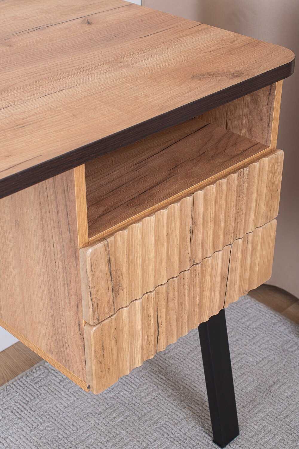- - При сборке ящики кажутся немного не от стола. Стол очень качественно сделал, а вот внутренние стенки для ящиков очень дешевенькие.