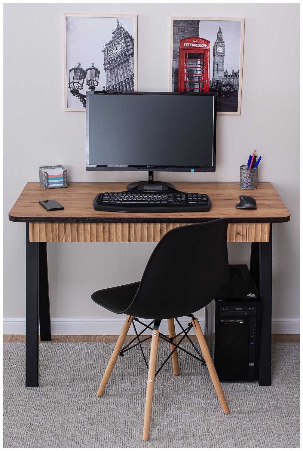 - Компактный размер идеален для маленьких комнат, помещается 27" монитор с клавиатурой.