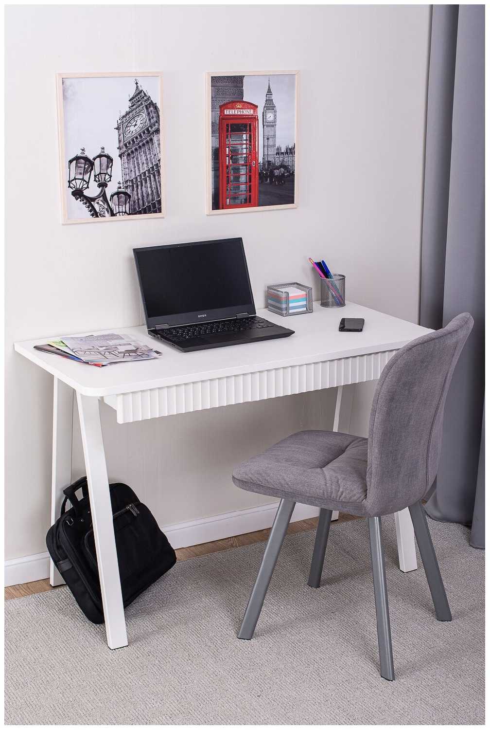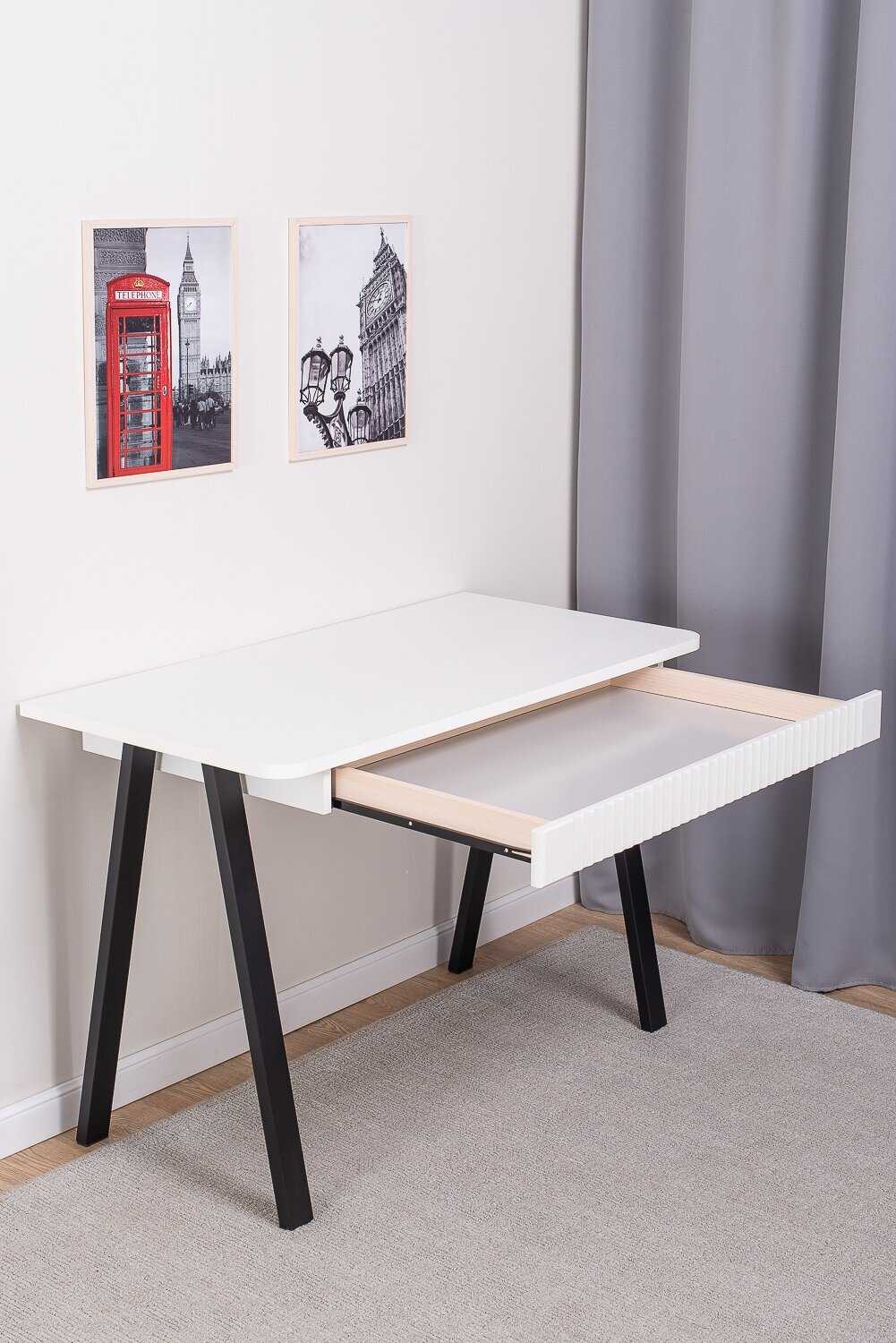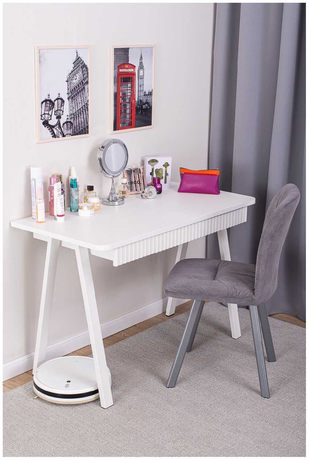 Стол отлично подходит для организации компактного рабочего места в маленькой спальне или детской комнате. Благодаря минималистичному дизайну и нейтральным цветам он легко вписывается в различные интерьеры. Его успешно используют как письменный стол для учебы и работы, а также в качестве макияжного столика. Отсутствие нижней перекладины позволяет плотно придвинуть его к стене даже при наличии высокого плинтуса.