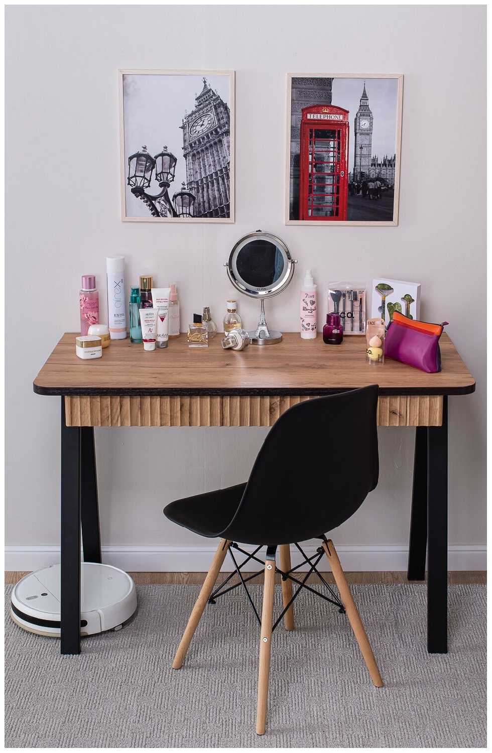 - Универсальность применения: подходит для работы за ноутбуком, в качестве макияжного столика или ученического места.