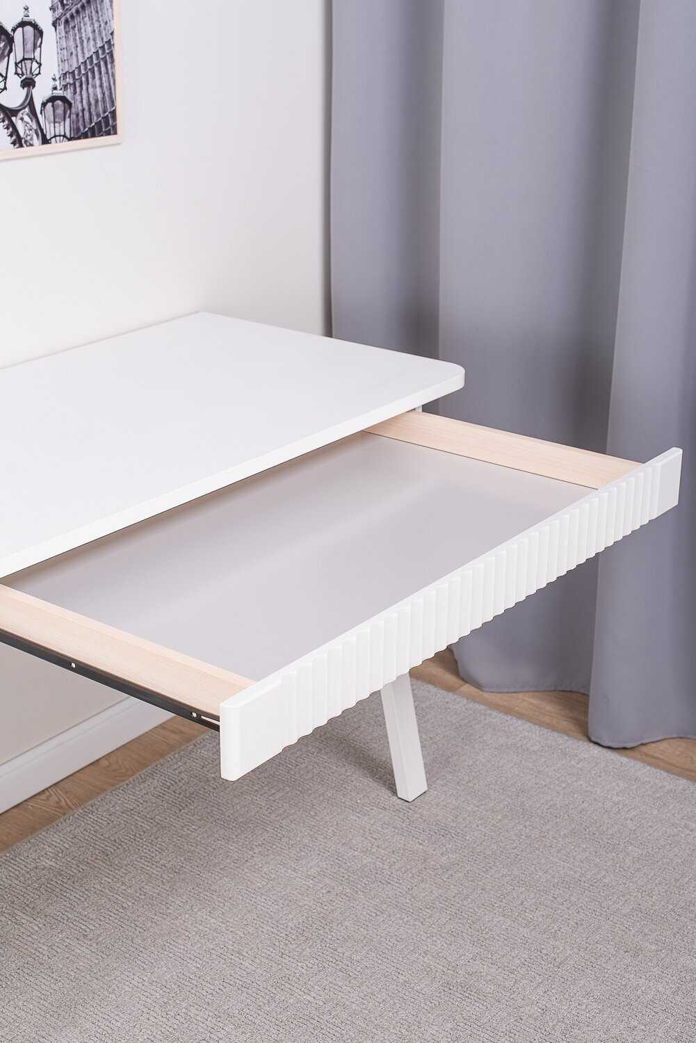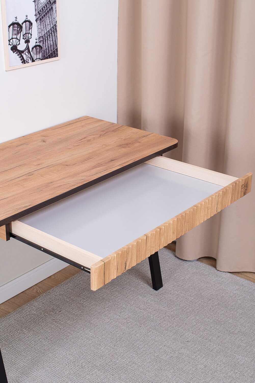 Стол оборудован вместительным, но неглубоким выдвижным ящиком полезной глубиной примерно 3-4 см. Его объема достаточно для хранения тонкого ноутбука, документов, косметики или канцелярских принадлежностей. Дно ящика окрашено в тон столешницы, что отмечено пользователями как приятная деталь. Некоторые отмечают, что система направляющих могла бы быть качественнее, но в собранном виде ящик функционирует исправно. -
