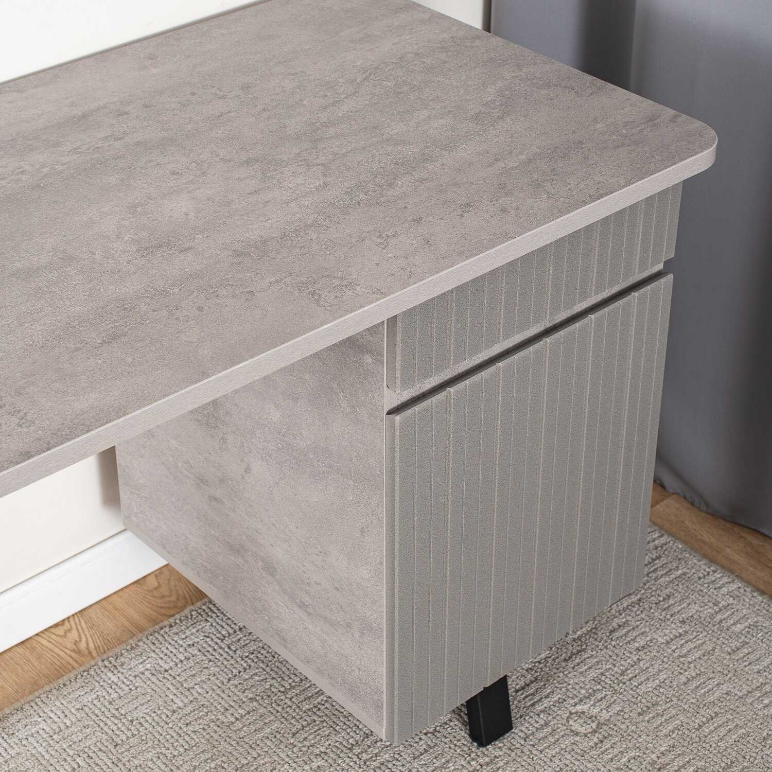 Искала именно со скруглёнными углами столешницу , чтобы ребенок не собрал головой все углы. Эта модель стола - самое то. Удобный размер тумбы , сам стол устойчив . Выглядит легко, не громоздко .