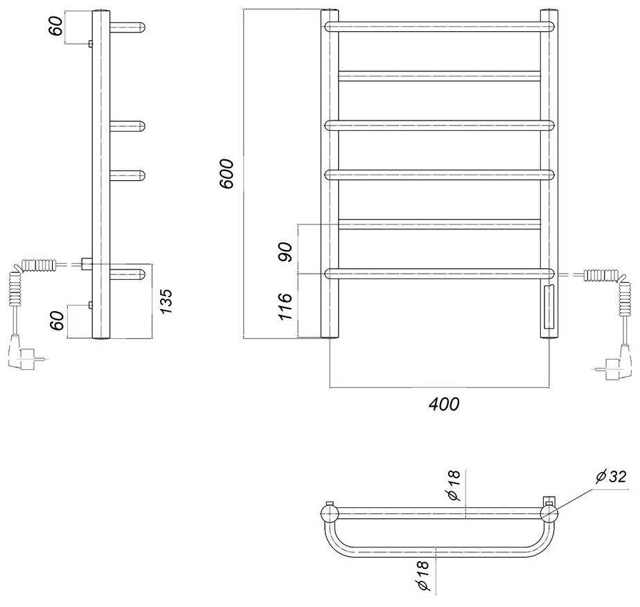 | Дополнительная информация : | Полотенцесушитель в сборе 1 шт., Комплект для скрытого подключения 1 шт., Провод с вилкой 1 шт., Кронштейн к стене - 4 шт., Паспорт на изделие |