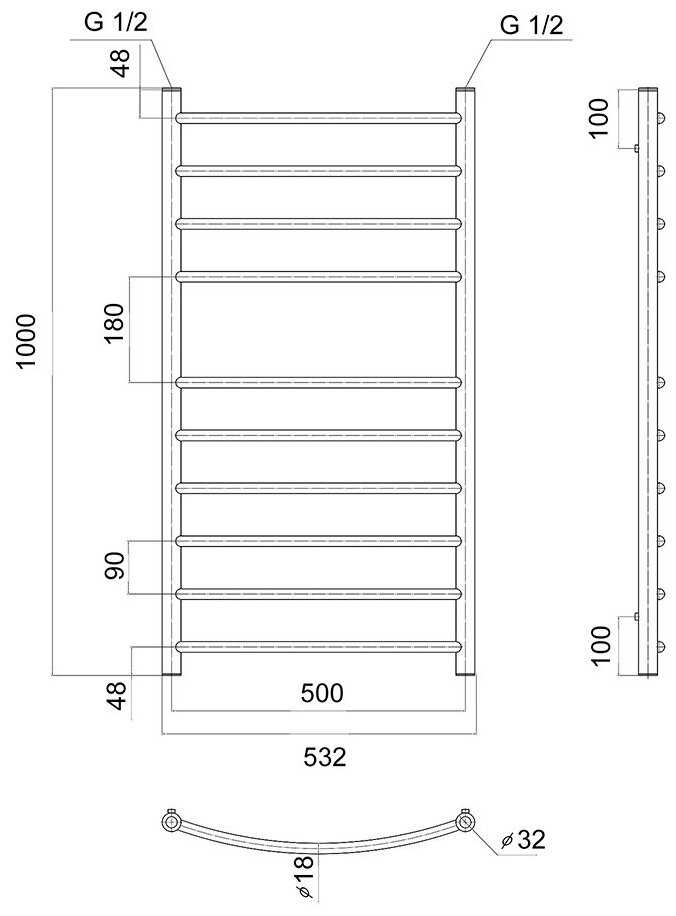 Отзывы о Полотенцесушитель водяной Domoterm Калипсо П10 500x1000 хром