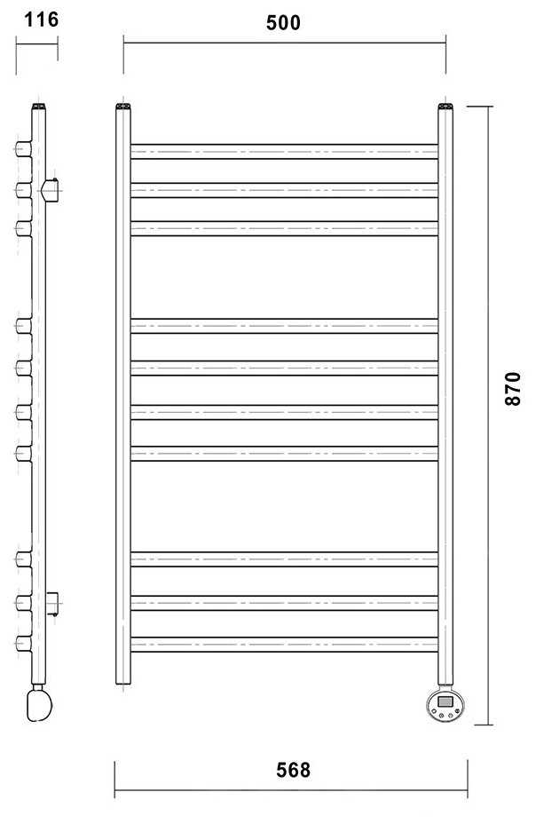 | Дополнительная информация : | полотенцесушитель, стойка крепления 4 шт., кран Маевского 1 шт., заглушка 1 шт., тэн с цифровым терморегулятором |