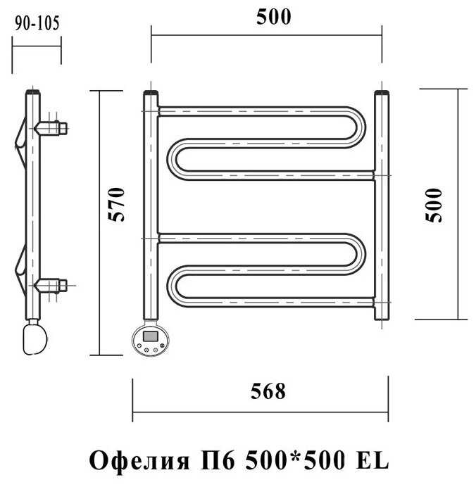 Характеристи Domoterm Офелия П6 500x500 E L хром