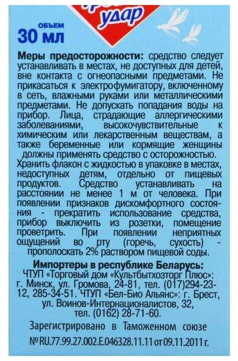 | Время действия жидкости для фумигатора : | 45 ночей |