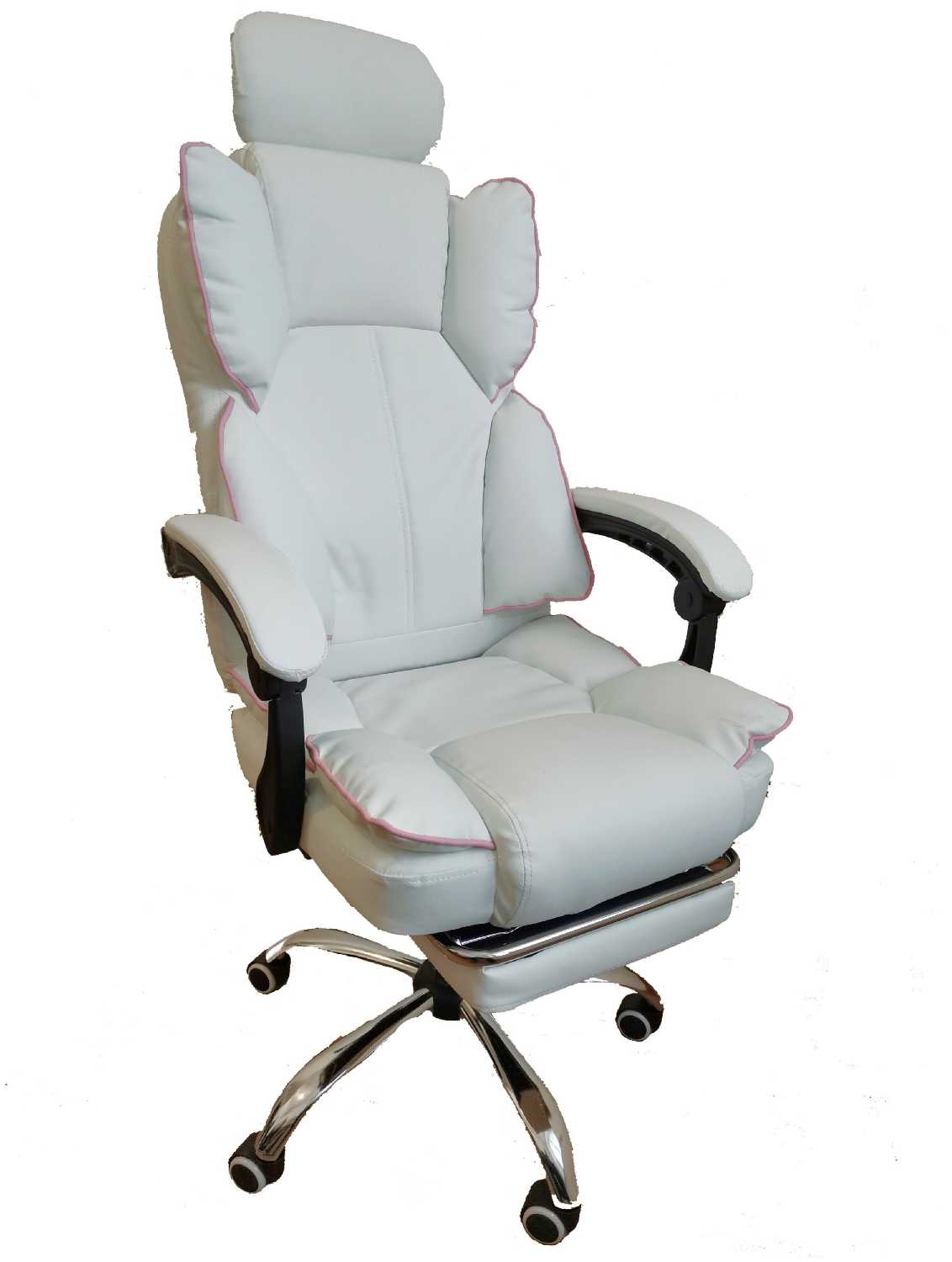 - + Хорошая комплектация, везде хром, регулировка наклона спинки, бонусом массаж от юсб(хотя в описании нету), поддержка ног, фиксация наклона спинки