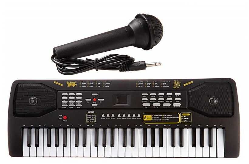 - + В комплекте есть микрофон, встроенные мелодии, большое количество клавиш, большой плюс это работа не только от батареек, но...