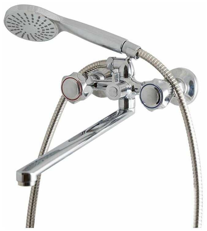 | @Комплектация : | смеситель - 1 шт., эксцентрики 3/4" на 1/2" - 2 шт., декоративные металлические чашки - 2 шт., душевая лейка со шлангом (150 см) - 1 шт. |