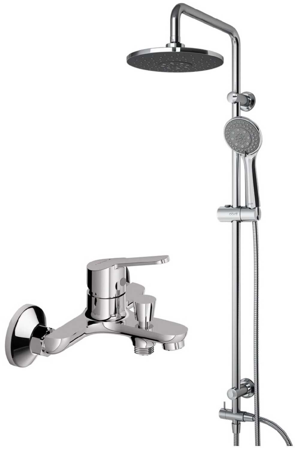 | @Комплектация : | смеситель, эксцентрические переходники, декоративные чашечки, душевые шланги, ручная лейка, верхняя лейка, штанга, инструкции |