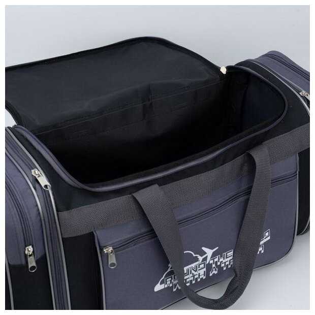ЗФТС Сумка дорожная на молнии, с увеличением, 3 наружных кармана, длинный ремень, цвет чёрный/серый