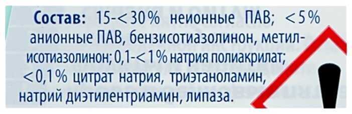 | Состав : | растворителя жиров в комбинации с различными ПАВ |