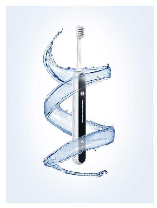 Небольшой вес, приятный на ощупь софт тач пластик, магнитная зарядка, красивая коробка и подача товара, заряд держит 2 недели, удобный чехол, подходят насадки от Soocas
