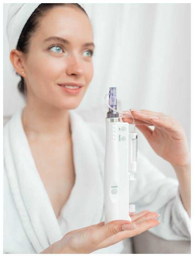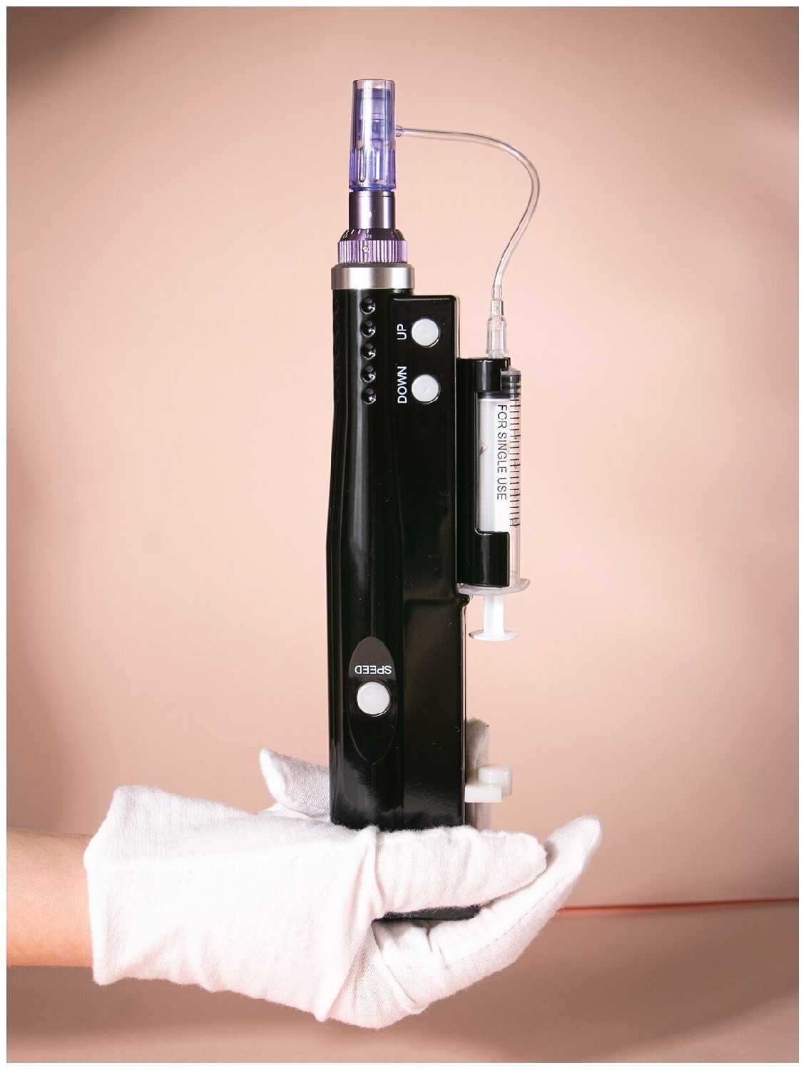 - + отличный аппарат для фракционной мезотерапии! Работает прекрасно, заряд держит долго, хватит на несколько полноценных процедур. При поставке в комплекте было длинный шнур для зарядки, две насадки с наноиглами, и два шприца для мезококтейля. Отличный аппарат! Красивый ,прочный, удобный!
