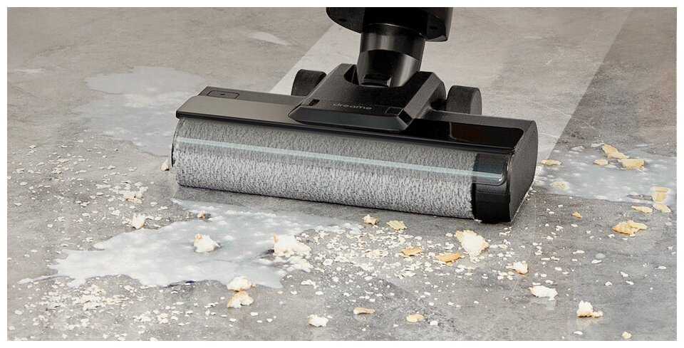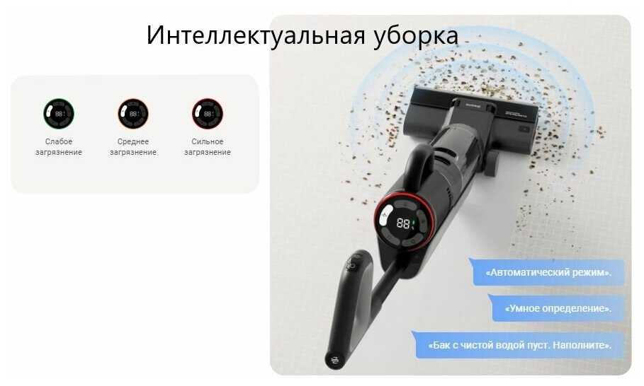 Да, в автоматическом режиме одновременно всасывает мусор и подает воду на валик, не размазывая грязь. Пользователи хвалят за идеальную чистоту без предварительной сухой уборки, особенно с шерстью и налипшей грязью от животных.