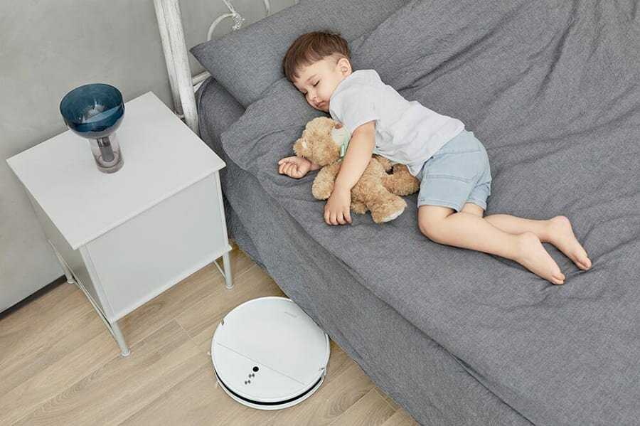 - Автоматическое возвращение на док-станцию для подзарядки при низком уровне заряда и возобновление уборки с прерванного места после пополнения энергии.