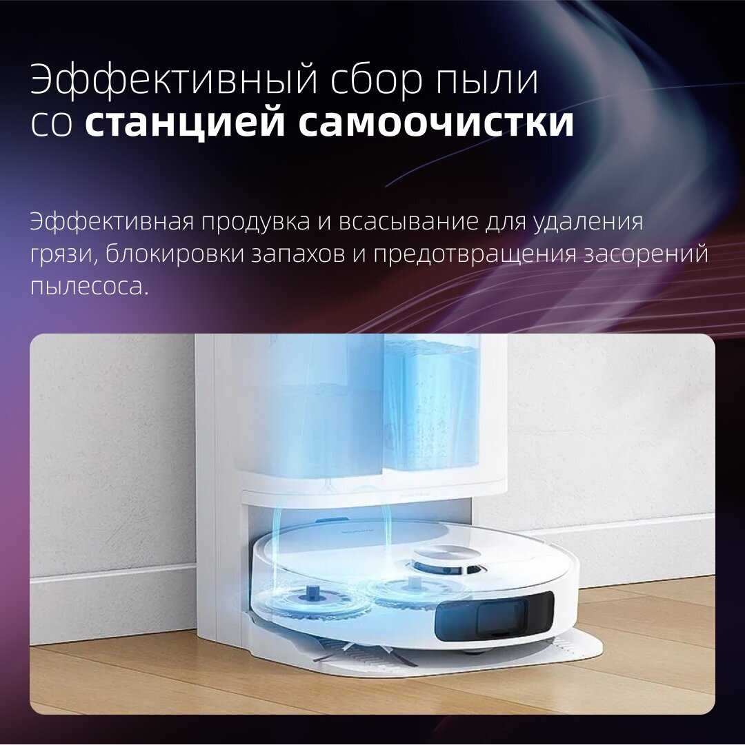 При возвращении на базу робот под высоким давлением промывает швабры, удаляя основную грязь. Частоту очистки можно настроить по зонам или квадратным метрам (минимум – каждые 5 м²). Однако пользователи отмечают необходимость ручной очистки ребристого поддона станции от остатков волос и песка после каждого цикла. -
