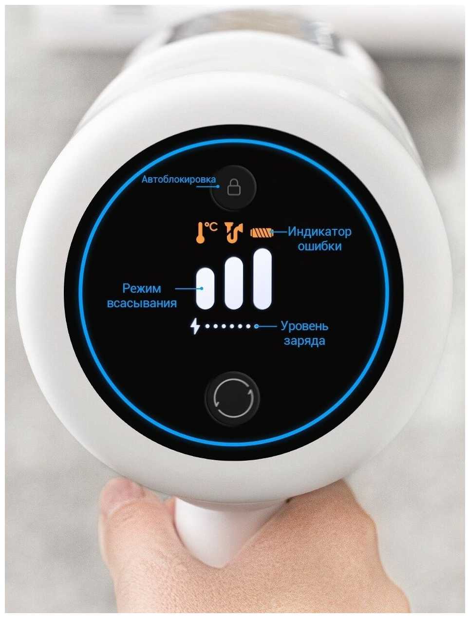 - Дисплей с индикацией заряда и ошибок упрощает диагностику (например, засорение).