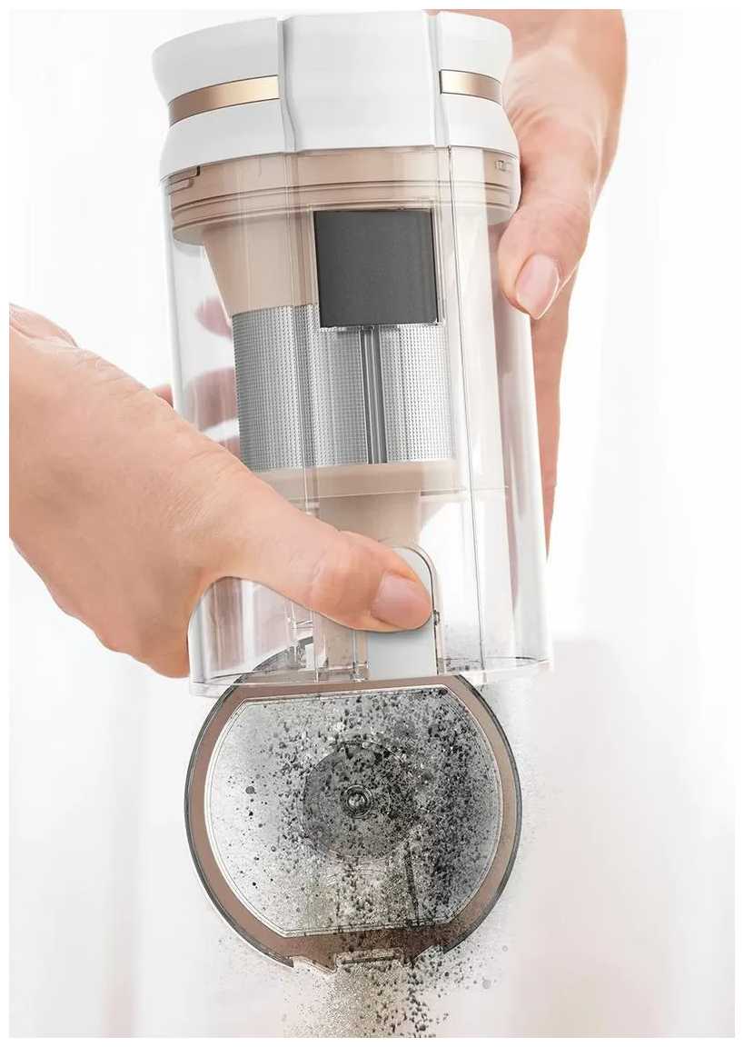 Способ очищения пылесборника оставляет желать лучшего - у новых моделей дайсона он реализован куда лучше (есть опыт использования v10 absolute), но у дайсона и ценник в три+ раза выше.