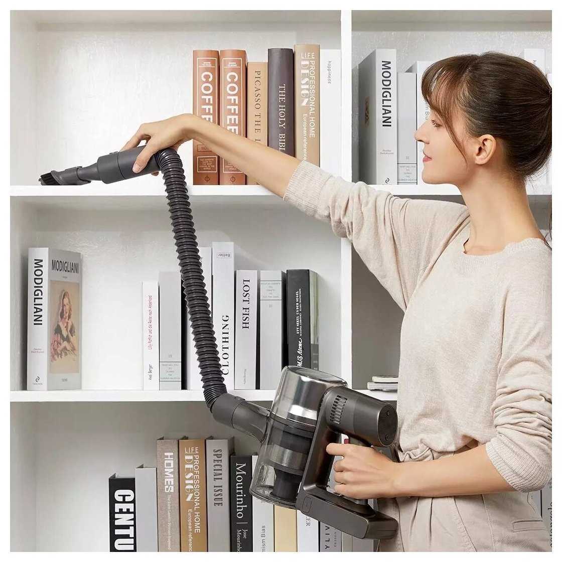 - Съемная конструкция и поворотный переходник (в комплекте) облегчают уборку под мебелью и в узких углах без необходимости наклоняться.