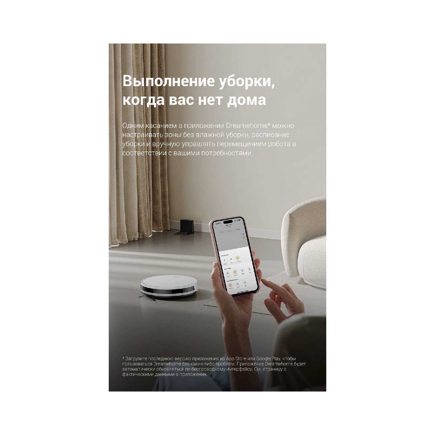 Приложение Dream Home получает положительные оценки за интуитивно понятный интерфейс и быструю настройку. Через него доступны планирование уборок, просмотр карты в реальном времени, выбор режимов мощности и отслеживание уровня заряда. При возникновении ошибок приложение отправляет уведомления на русском языке с пояснениями. Однако некоторые пользователи сталкиваются с периодическими глюками отображения карты и необходимостью повторного подключения к сети Wi-Fi. -