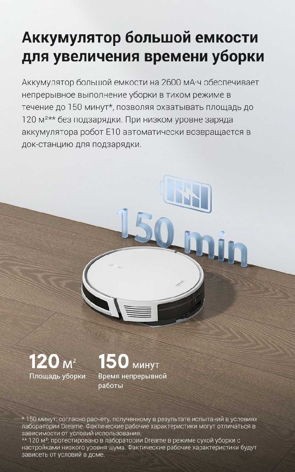 Для квартиры до 50 кв. м. хватит одного заряда. Но если больше помещение, то уборка будет в два этапа и растянется на несколько часов. Маленький объем батареи, хотелось бы больше. Не быстро заряжает батарею, поэтому использую каждый день, но по зонам.
