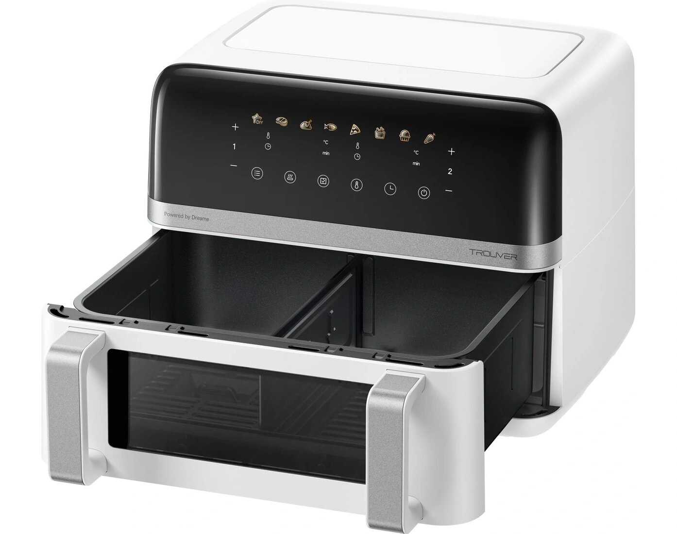 - + Внешне выглядит стильно и современно, сразу привлекает внимание. Есть два отдельных отсека, что позволяет готовить разные блюда одновременно, не смешивая запахи. Можно легко задавать нужное время приготовления, всё интуитивно. Если нужно запекать большую порцию одного блюда, в комплекте идёт специальная перегородка, которая делит пространство пополам. Готовит равномерно на любой поверхности, без проблем. Инструкция написана просто и ясно, но даже без неё разобраться несложно, управление понятное. Недавно попробовал приготовить фаршированные грибы за каких-то 15 минут, получились сочными внутри и с хрустящей корочкой снаружи, прям вкуснотища. В целом, пользоваться удобно, всё продумано.