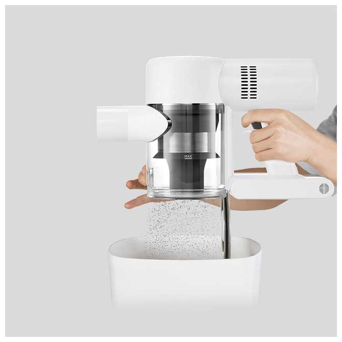 - Полупрозрачный контейнер на 0.5л с клапаном блокировки пыли предотвращает обратный выброс мусора при опорожнении.