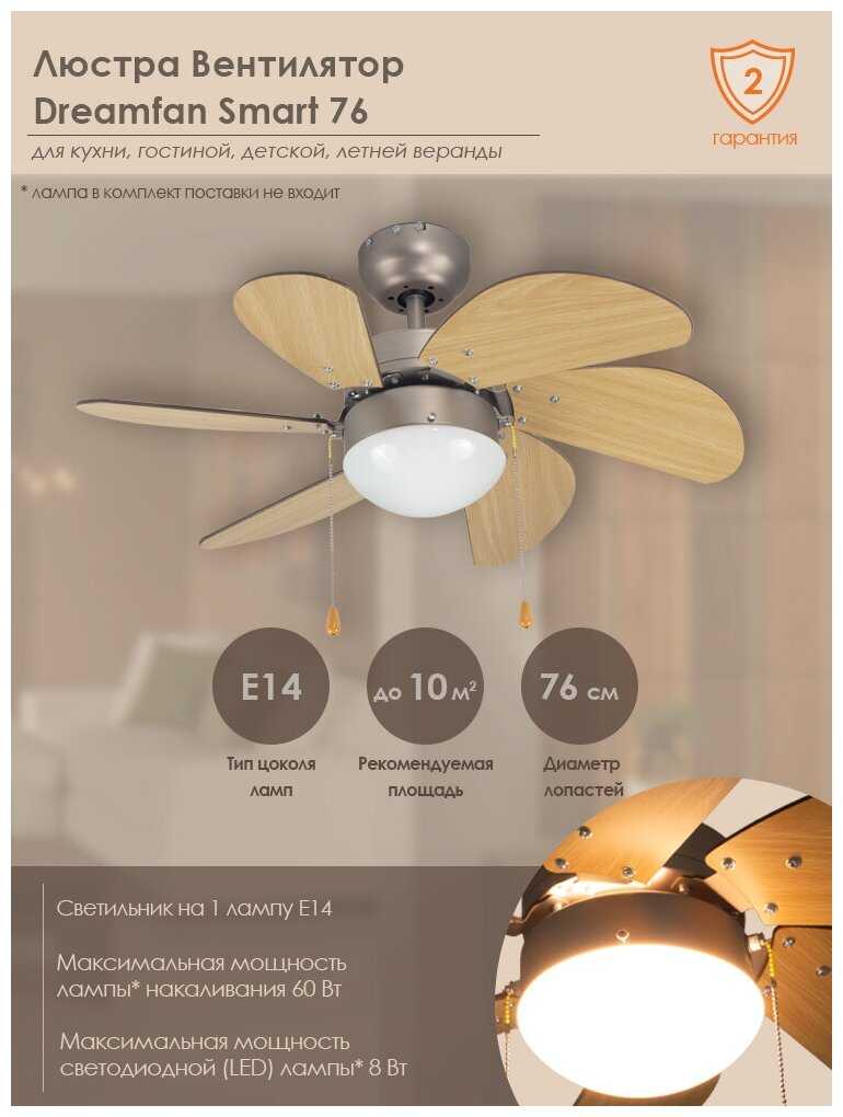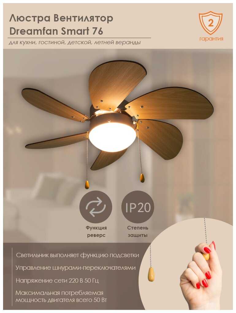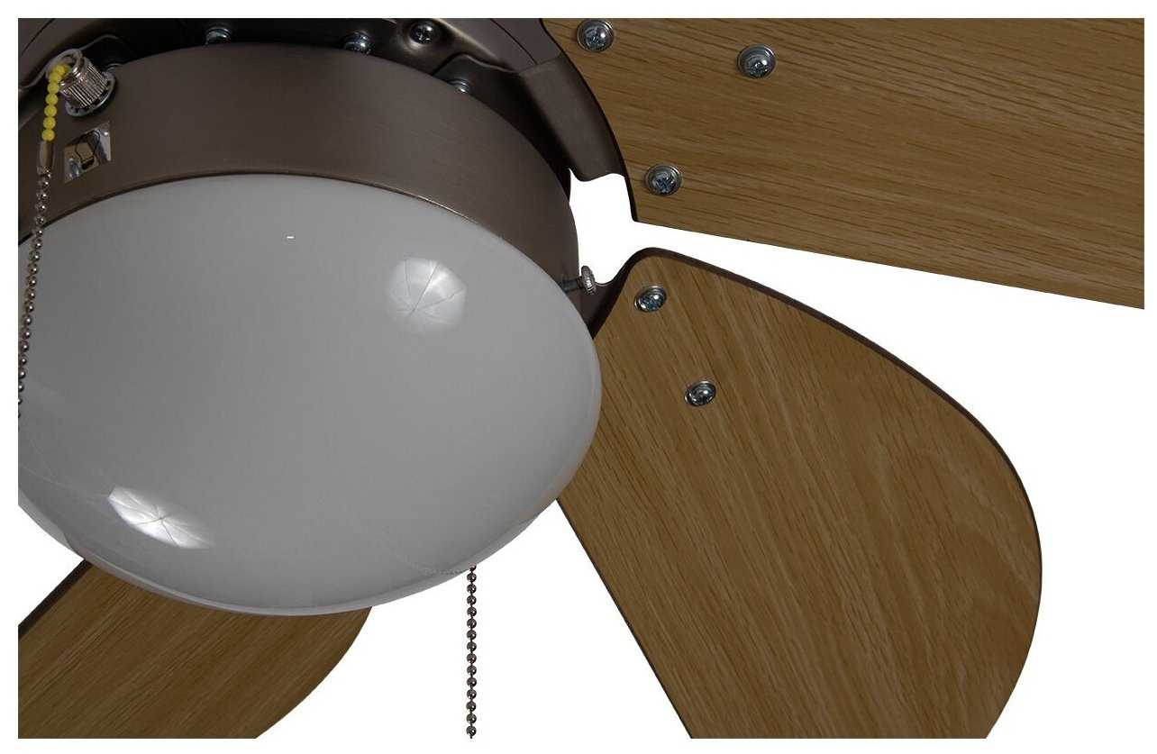 Ну и все преимущества от вообще всех потолочных вентиляторов: не дует в одну точку или периодически (при поворотах), а просто равномерно перемешивает воздух, создавая лёгкий ветерок по всему объёму комнаты (циркуляция от центра вниз, по низу к стенам, по стенам вверх, по потолку к вентилятору); шум на столько низкий, что даже на быстрой скорости не мешает смотреть фильмы на обычной громкости; не доступен детям без каких-нибудь стремянок; не мешается под ногами и руками; и самое главное — зимой на низкой скорости можно горячий воздух от обогревателей опускать вниз к холодному полу (уже жду зимы, чтобы это заценить). - - Цепочки из самих переключателей торчат какие-то стрёмно-жёлтые, при этом в комплект входят удлинители из таких же цепочек но металлические, в результате смотрится это соединение хреновато. Могли бы при сборке переключатели разобрать и сразу вставить длинные металлические цепочки.