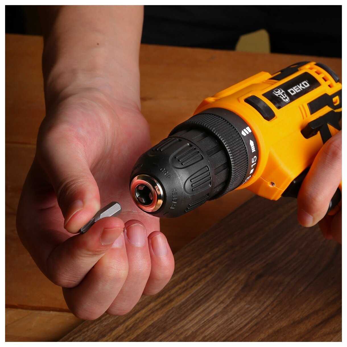- особенности конструкции: гнездо в корпусе для крепления бит