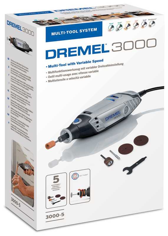 основная причина покупки-удобного решения Dremel 3000 (made in Mexico) был единственным возможность, щеток Двигателя, как и его предшественник извне могут перейти. Верхний предел частоты вращения для модели 3000 от 33.000 был не актуален, так как у старой Dremel MultiPro max ca уже 25.000 были вполне адекватные. В противном случае остается только надеяться, что 3000 с 5-ступенчатое регулирование скорости пусть имеют похожий жизненный 395 как, которая заработала себе место в витрине Музея более.
