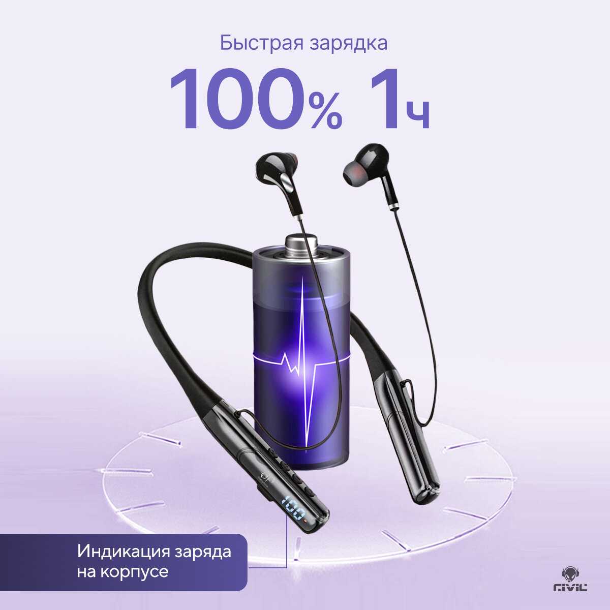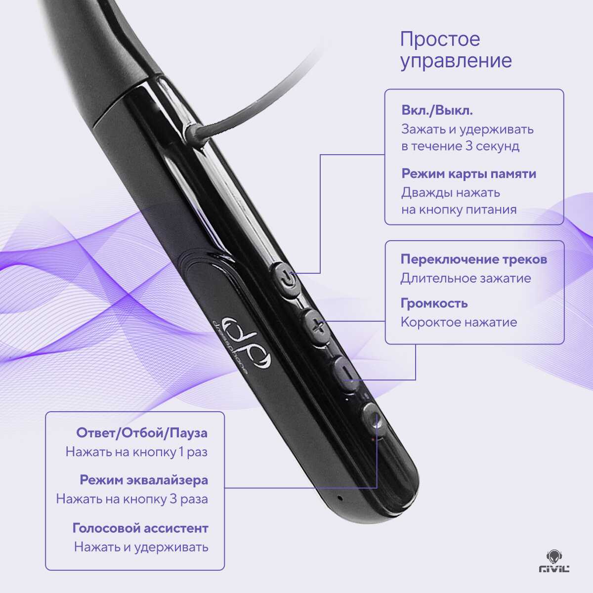 - Магнитные крепления наушников предотвращают спутывание, а ободок с регулируемым углом наклона обеспечивает плотную посадку даже при занятиях спортом.