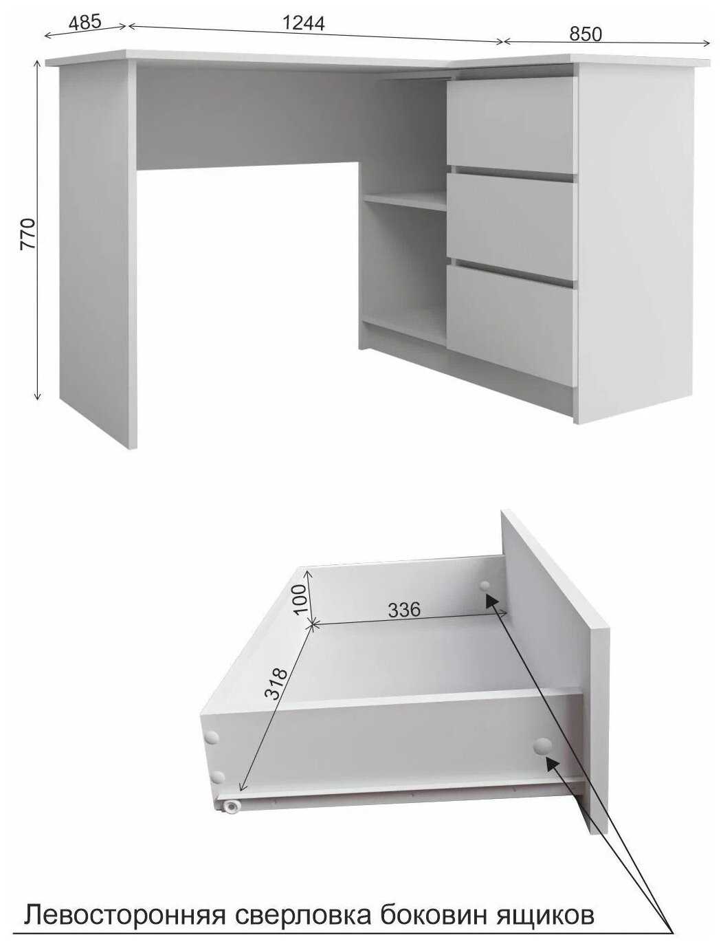 | Особенности : | без ящиков и полок, отделение для системного блока, полка для клавиатуры, полка для принтера, с подсветкой, с тумбой, с ящиком для хранения, угловой |