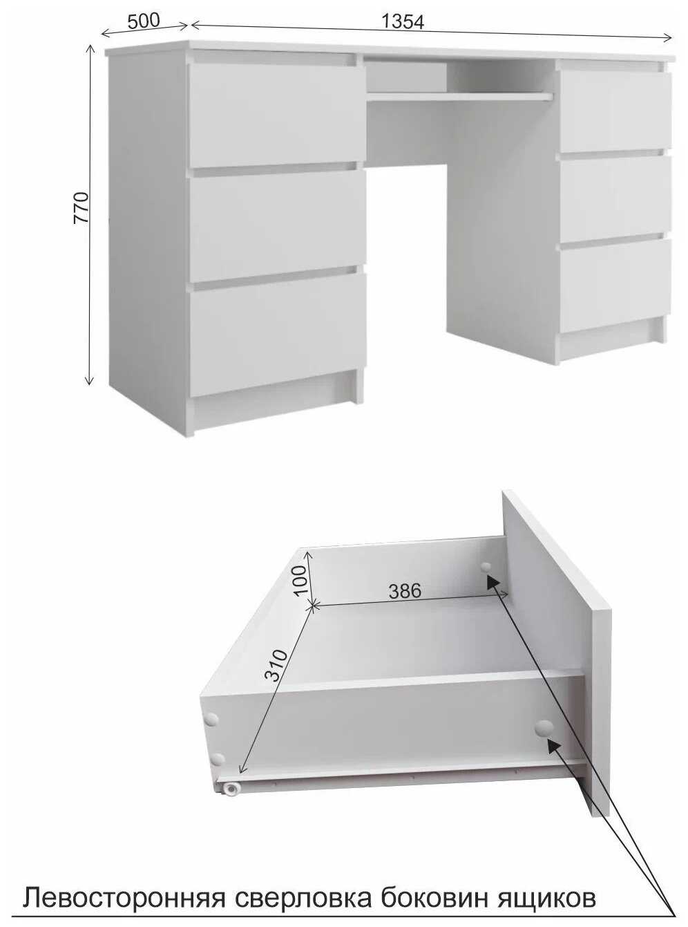 Прекрасный стол за свои деньги, инструкция понятная, собрала его одна за час. Цвет соответствует фотографии. Удобно, что собрать его можно на любую сторону. Ящики и полки вместительные. (Зеркало покупала отдельно)