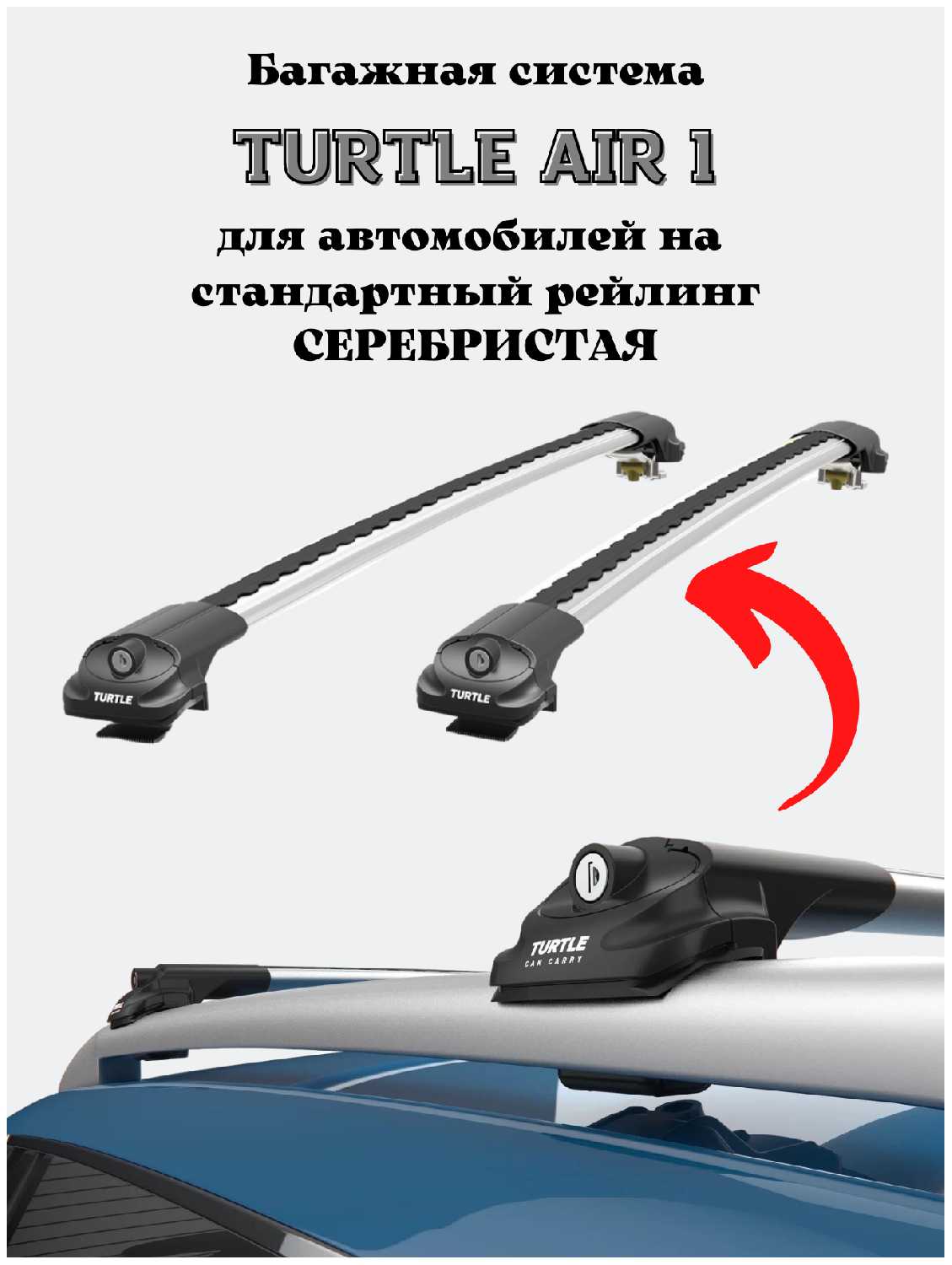 Can Otomotiv Багажник на крышу Turtle Air1 на стандартные рейлинги RENAULT DUSTER 2010-2015 I до рестайлинга Серебристый