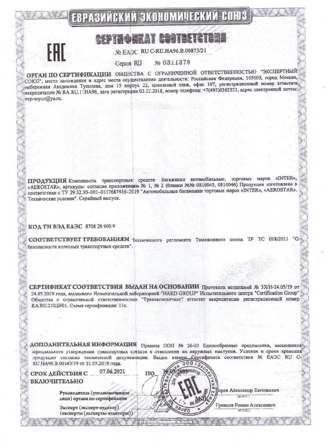 5.9/10 балловInter Багажник на крышу ( D1-120)