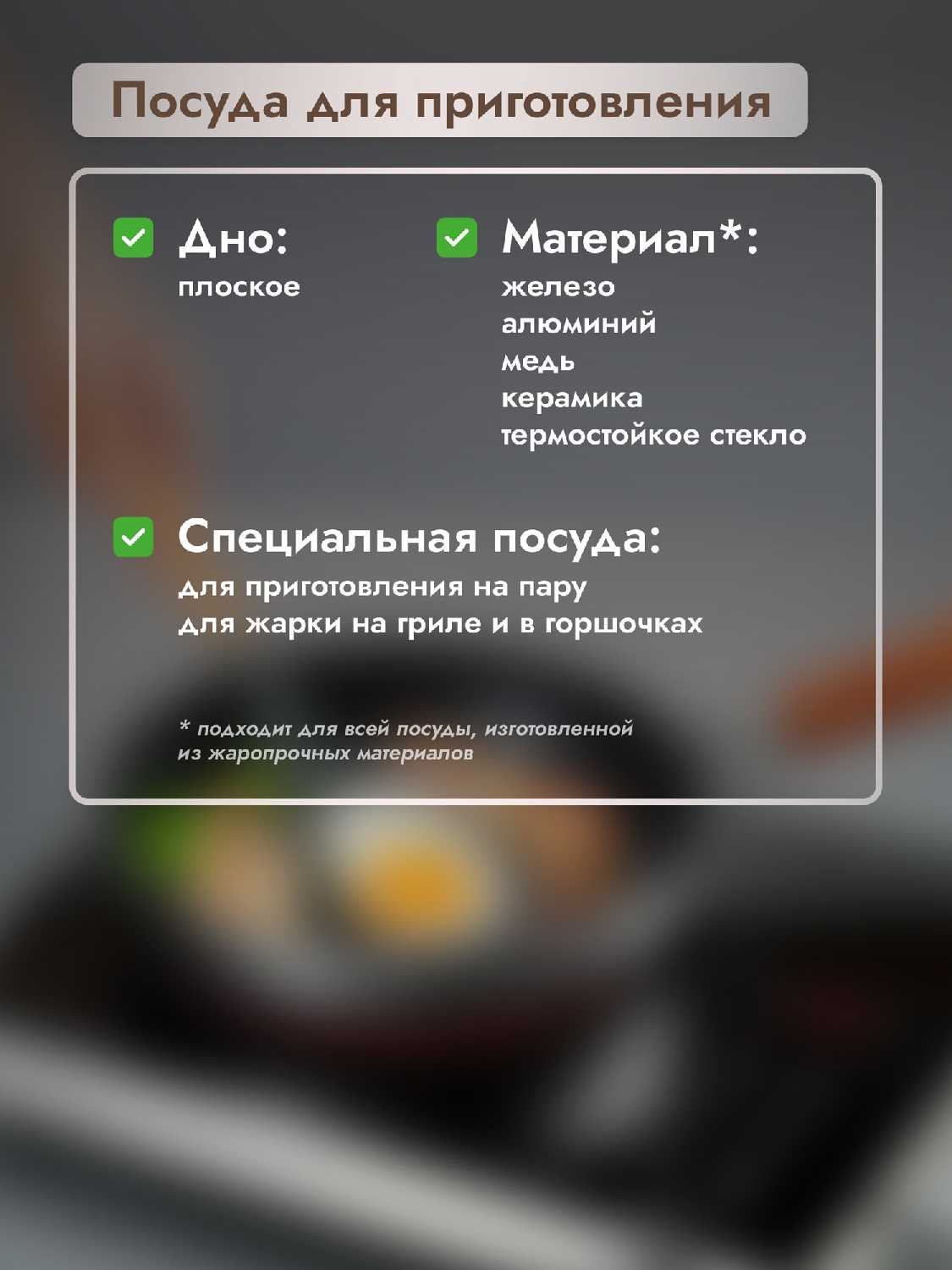 Наличие 8 программ позволяет легко выбирать оптимальный режим для различных блюд, будь то жарка, тушение или кипячение. - - Для работы с индукционной плитой необходимы специальные посуды, что может потребовать дополнительных затрат.Некоторые пользователи отмечают, что плита может быть чувствительна к изменениям температуры и требует времени для привыкания.