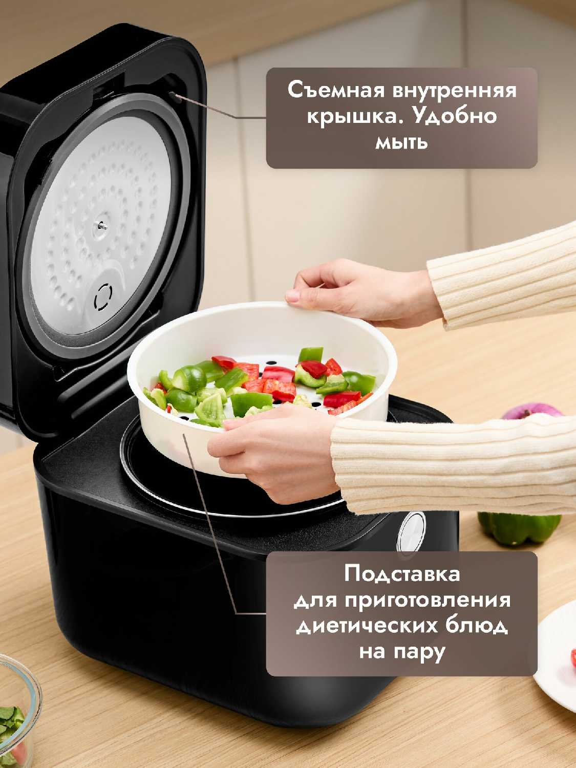 Мультиварка понравилась: взяла модель с минимумом ненужных мне программ и это оказалось удобным решением. Порадовало, что верхняя панель снимается для мытья, меню на русском и большая чаша. Недостатков практически нет, разве что отсутствие отсека для конденсата — мелочь, но заметная. В целом советую тем, кто ищет простую и надёжную мультиварку для повседневного использования 👍
