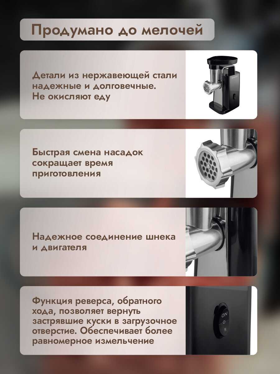 - - Мощность могла бы быть выше, так как при переработке больших объемов мяса она немного перегревается.